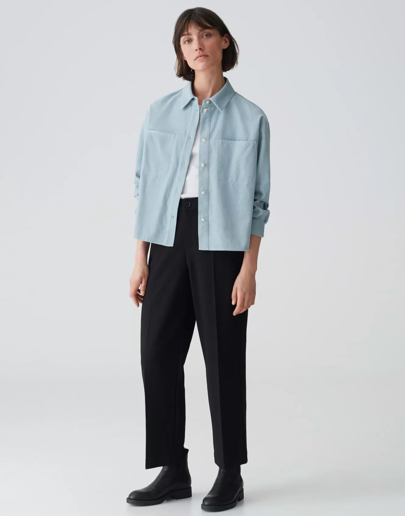 Die Cordbluse begleitet uns auch in dieser Saison und begeistert durch das softe Hand-Feel. Das modische Update erhält die Bluse durch die außergewöhnlichen Brusttaschen und den Hornoptik Knöpfen – für einen natürlichen Look.