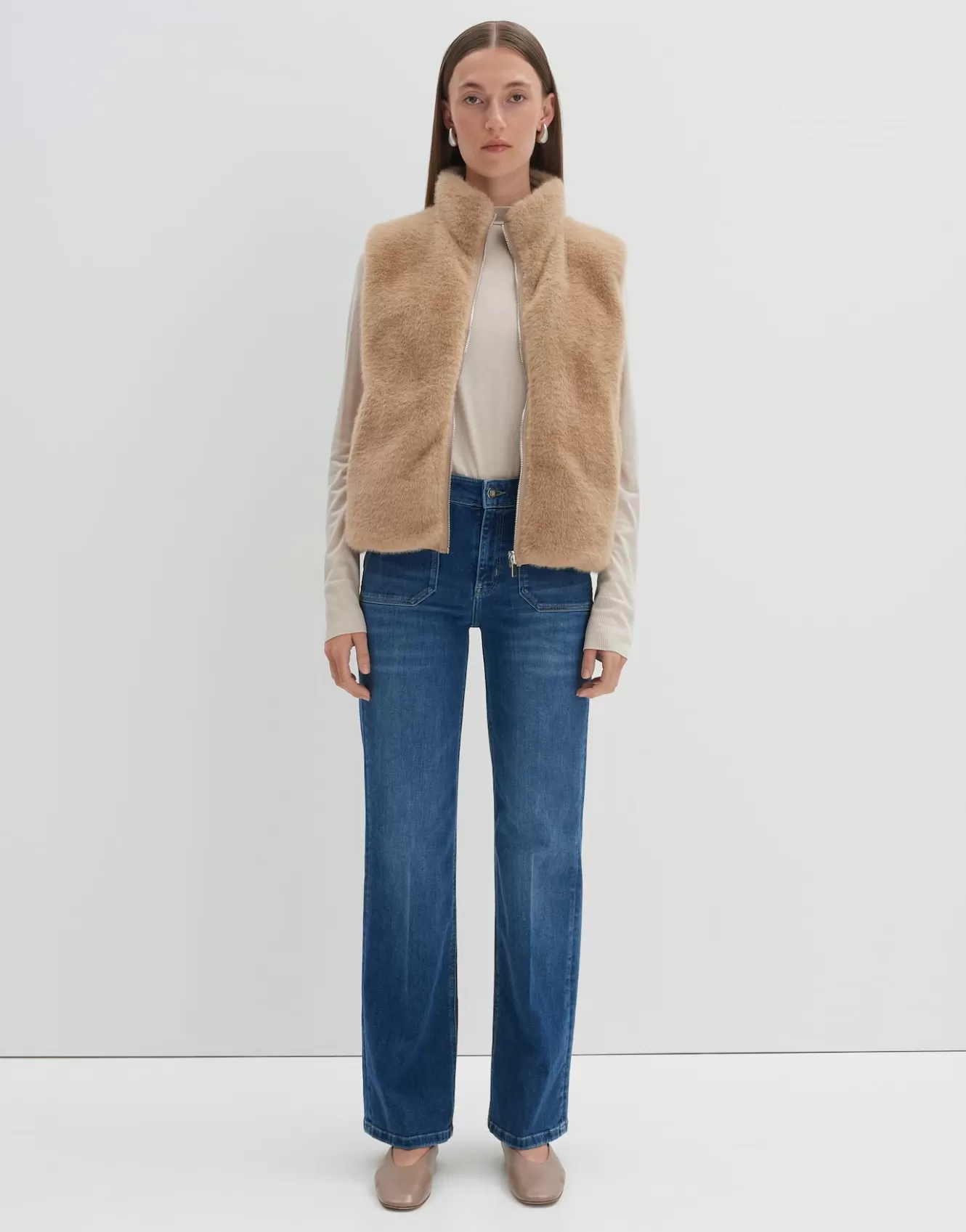 Die Flared Jeans überzeugt mit eckig abgesetzten Taschen im Utility Stil und setzt so einen coolen Akzent zum femininen Denim Look.