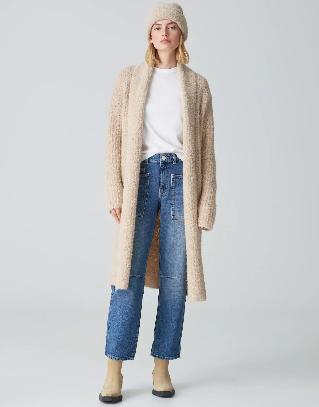 Der Long Cardigan lädt durch den weichen Bouclé Strick zum Kuscheln ein – einfach überwerfen und wohlfühlen!