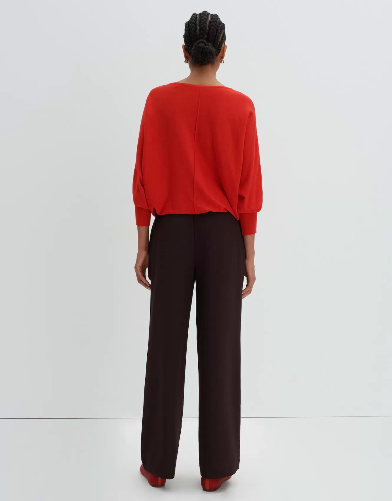 Dieser weich fallende Strickpullover ist ein schmeichelnder Jackenersatz im Sommer und im Winter ein kuscheliger Überzieher.