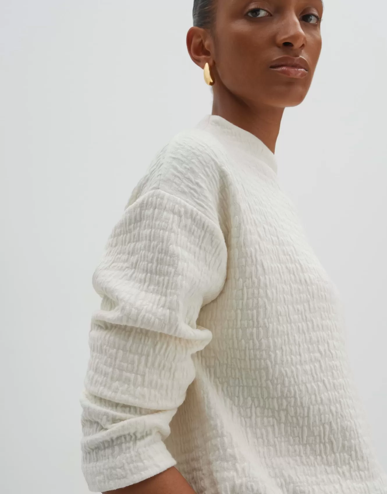 Der Sweater sorgt mit der dreidimensionalen Oberflächenstruktur für einen dynamischen Eyecatcher.