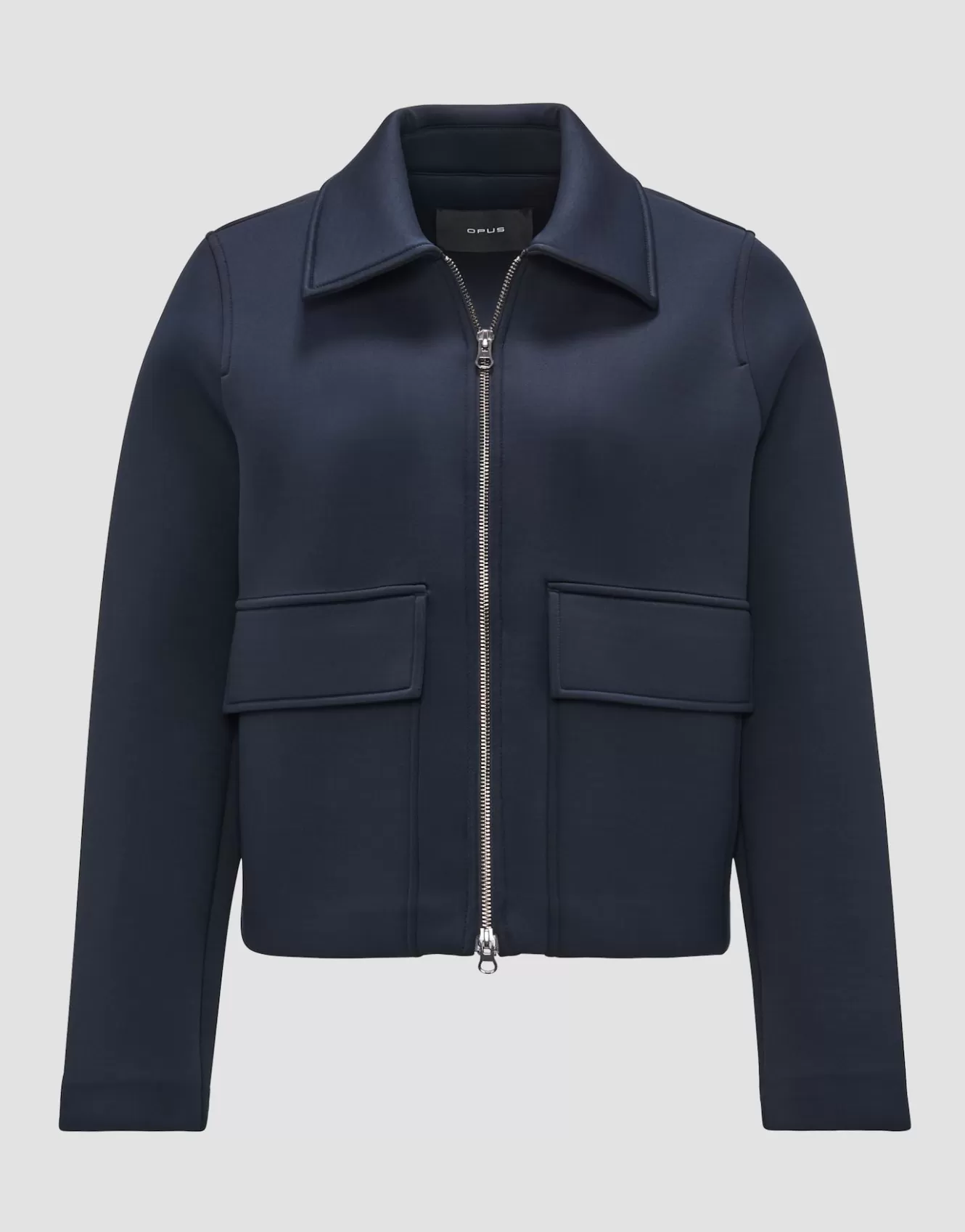 Die Sweatjacke aus innovativem Scuba Material kommt in einer modernen Boxy Silhouette daher und kreiert durch die Utility Details einen lässigen All-Day-Casual-Look.