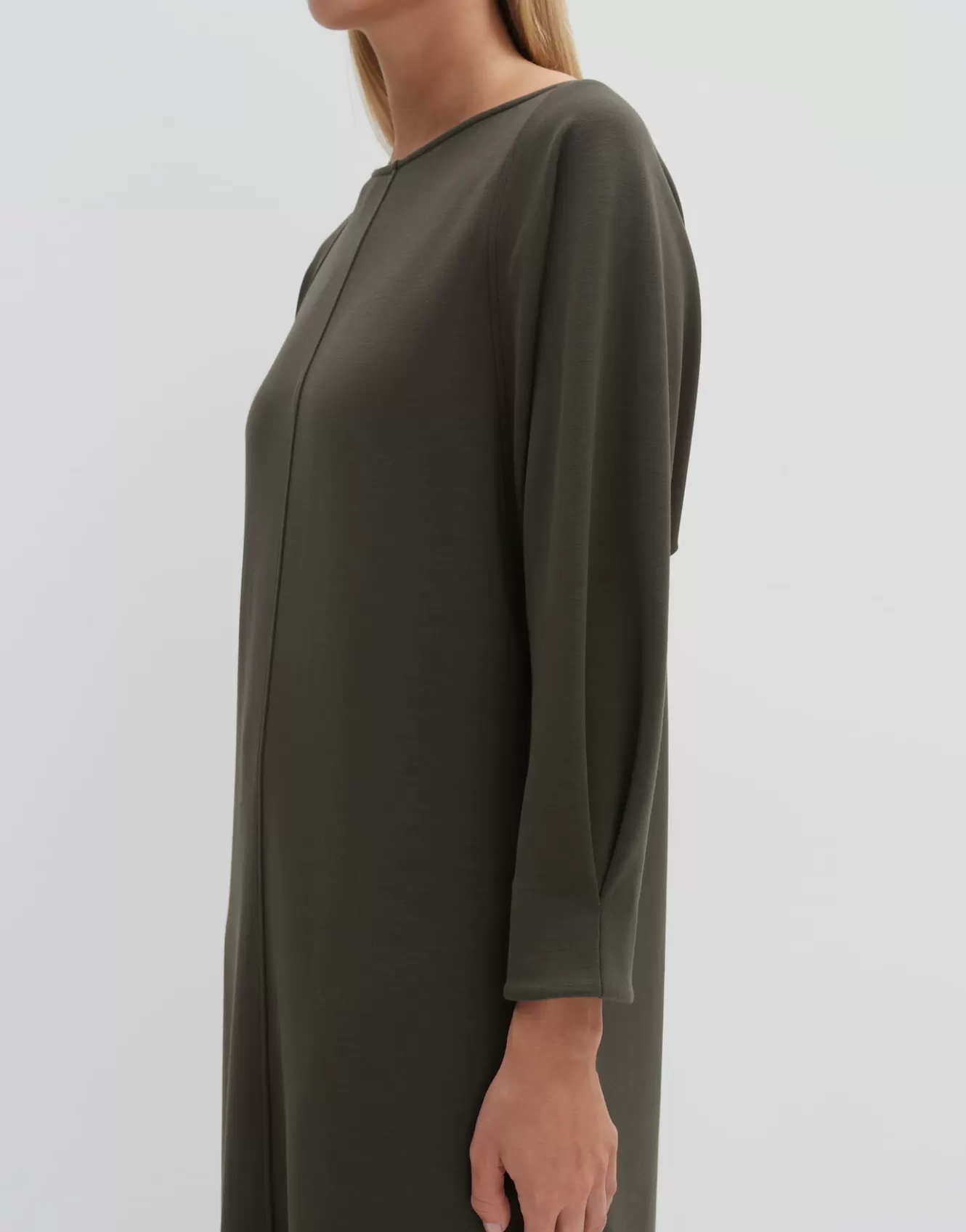 Das Sweatkleid setzt auf moderne Linienführung. Durch den schlichten Look, liegt der Fokus auf dem extrem weichen Material.