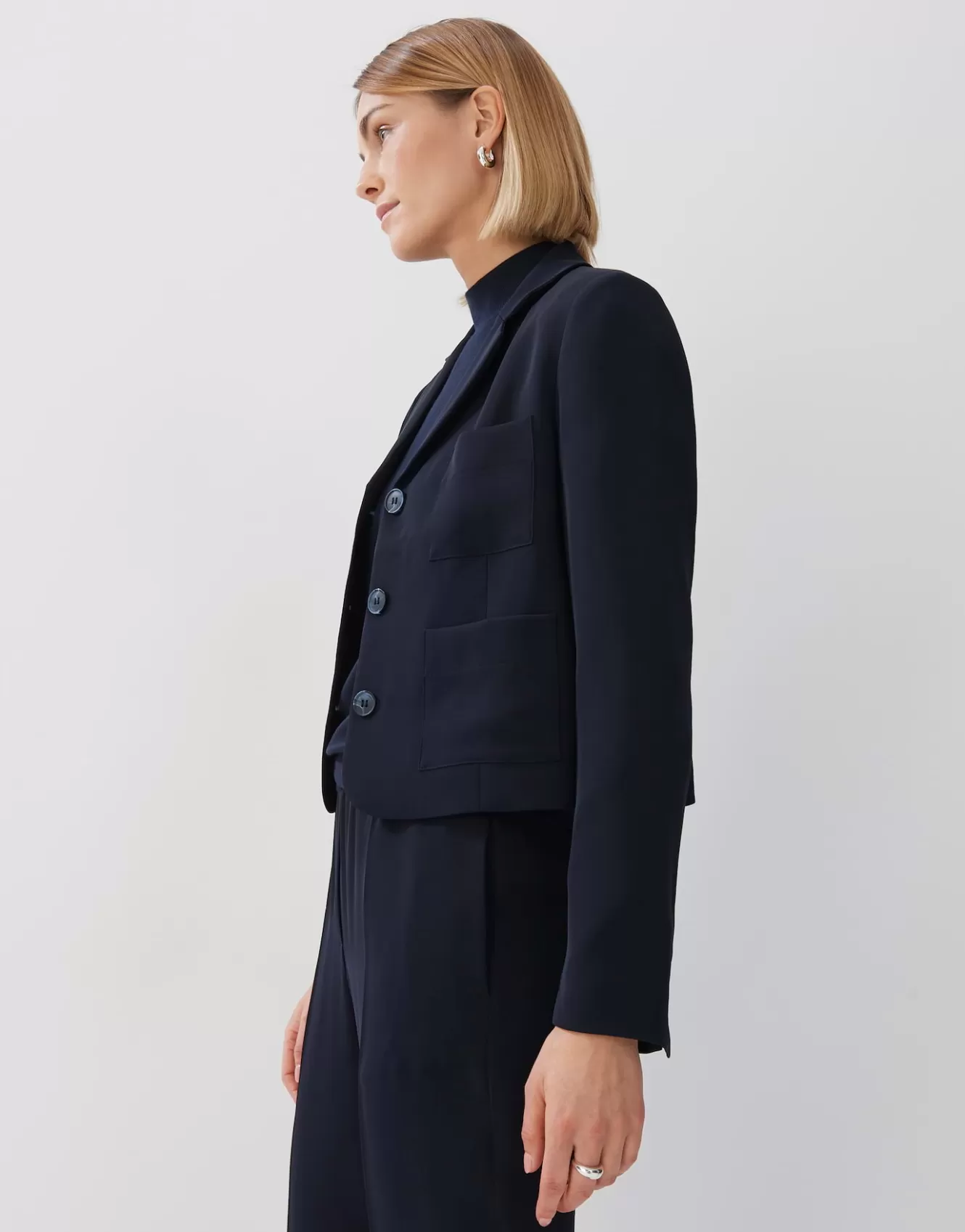 Dieser Blazer mit kurzer Passform ist Business und Reise geprüft, denn er bleibt stets in Form und knittert nicht.