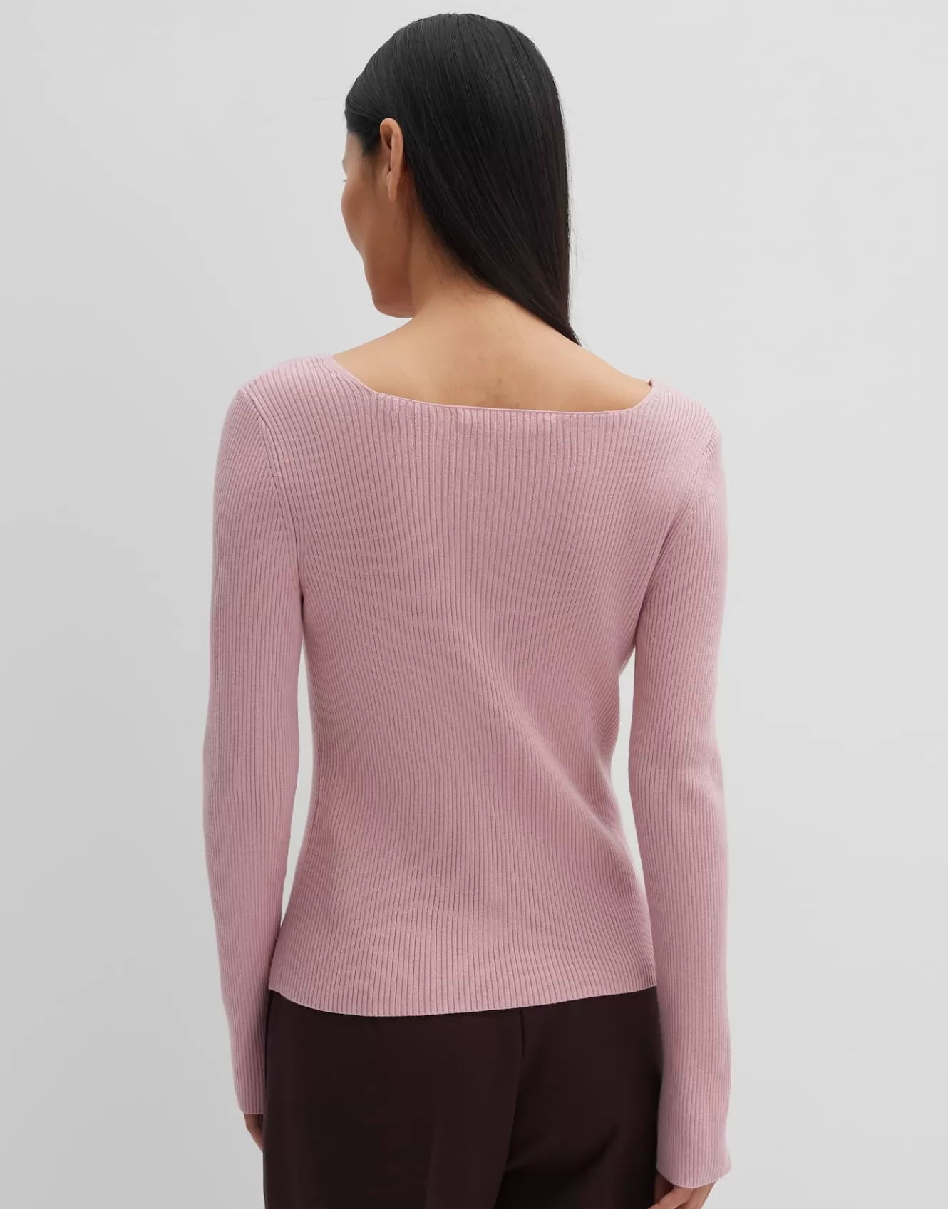 Der feine Ripppullover schmeichelt besonders durch den femininen Karree-Ausschnitt.